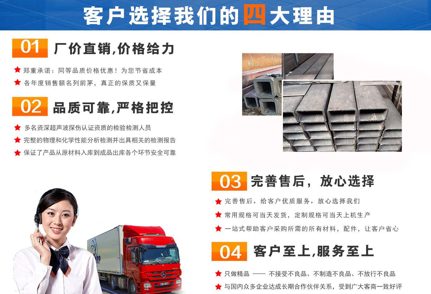 無(wú)錫盛灝特鋼有限公司長(zhǎng)期銷售Q355B方矩管,鍍鋅方矩管,大口徑方矩管,厚壁方矩管,無(wú)縫方矩管等各種方管產(chǎn)品!產(chǎn)品廣泛應(yīng)用于鋼結(jié)構(gòu)建筑(鋼管混凝土、管樁、管桁架,橋梁、海上作業(yè)平臺(tái)、港口碼頭建設(shè)、電視通訊鐵塔、電力鐵塔等鋼結(jié)構(gòu)管)。壓力管道(石油、天然氣、煤漿等輸送)、機(jī)械制輥等領(lǐng)域?! 」咀詣?chuàng)辦以來(lái),一直堅(jiān)持“誠(chéng)信合作,共同發(fā)展”的經(jīng)營(yíng)理念?! ∫恢币詠?lái)我們本著“以誠(chéng)相待,以信為本,互利互惠,共同發(fā)展”的長(zhǎng)期方針,充分發(fā)揮現(xiàn)貨資源優(yōu)勢(shì)為您提供“可靠的產(chǎn)品、過(guò)硬的質(zhì)量、完善的服務(wù)”,歡迎廣大新老客戶前來(lái)洽談業(yè)務(wù)?! 」疽浴爸琳\(chéng)至信,雙利雙贏”為根本宗旨,堅(jiān)持科技興企的發(fā)展策略,恪守商規(guī),創(chuàng)新進(jìn)去,贏得聲譽(yù),贏得了市場(chǎng),得到了社會(huì)各階層的認(rèn)可。公司以雄厚的實(shí)力、可靠的質(zhì)量、儲(chǔ)存鋼管門類齊全、庫(kù)存量大之優(yōu)勢(shì),本著守法、守信、創(chuàng)新的理念,打造精品,發(fā)展鋼管多元化品種,滿足客戶各種需求,以低廉的價(jià)格、熱情的服務(wù)面向國(guó)內(nèi)外客戶,歡迎鋼管界同仁加盟!我們?yōu)榭蛻籼峁┲艿降姆?wù) ! 公司為客戶提供以下服務(wù) 服務(wù)三保: 保證質(zhì)量、保證時(shí)間、保證數(shù)量。 服務(wù)宗旨: 雄厚的實(shí)力、優(yōu)質(zhì)的產(chǎn)品、低廉的價(jià)格、周到的服務(wù)?! ∨慵鏍I(yíng),一支起定。...